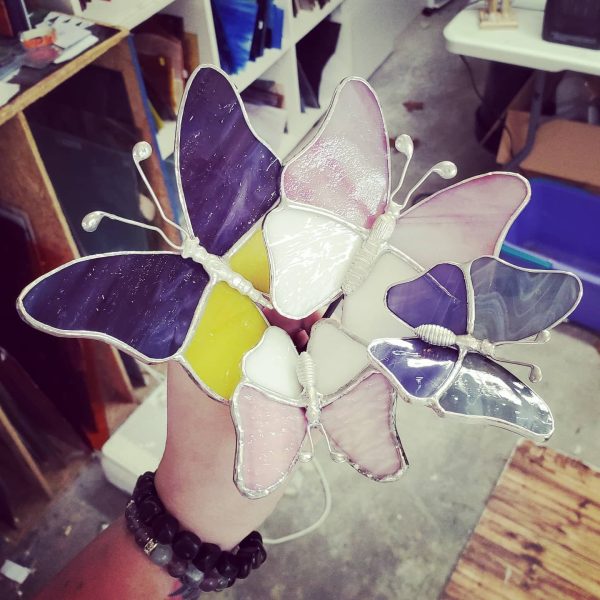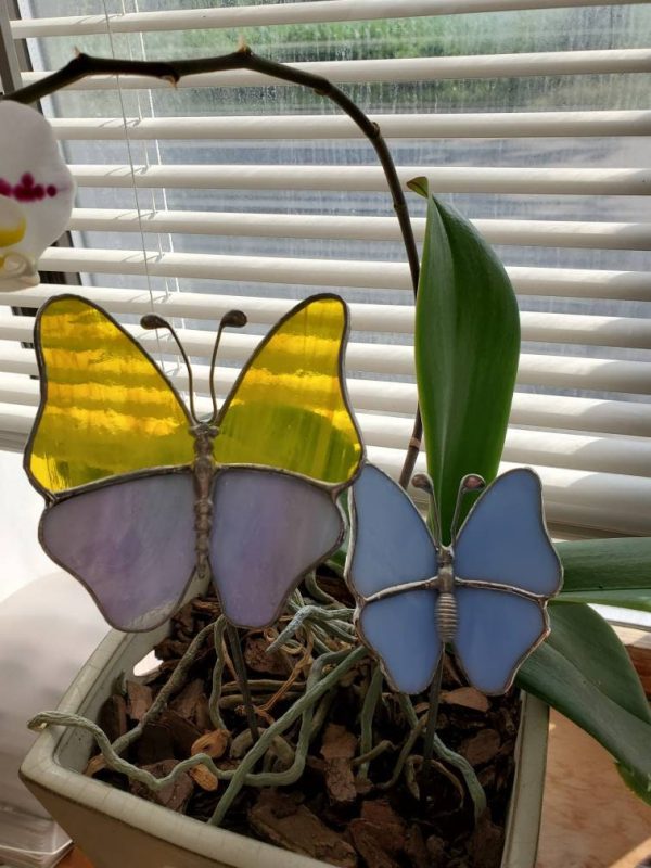 Skip to contentMini Stained Glass Butterfly Garden Stake made in Your Color Choices! These are 70% smaller than my full size garden art butterflies. An adorable accent to any garden or plant pot.